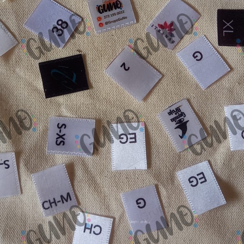 Etiquetas textiles de 1.60x2 cm, 1000 piezas en listón satinado 1 cara